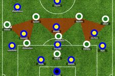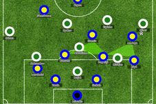 Zonele marcate cu verde în imaginea de mai jos indică faptul că Steaua a reușit să echilibreze din punct de vedere numeric orice tentativă de atac a bulgarilor pe flancul drept al roș-albaștrilor.