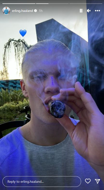 Erling Haaland s-a fotografiat fumând un trabuc și a postat imaginea pe Instagram.
