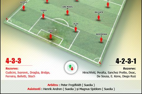 Minutul 40 avea să aducă atât primul cartonaș galben al meciului (Trică), cât și primul gol. Lovitura liberă executată de Deco -în urma faultului făcut de Trică- l-a găsit total liber pe Salomon Kalou. Acesta nu a stat mult pe gânduri și Chelsea intra în avantaj la cabine.