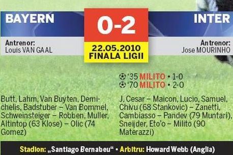 Inter – Bayern, reeditarea finalei de anul trecut (2-0 pentru