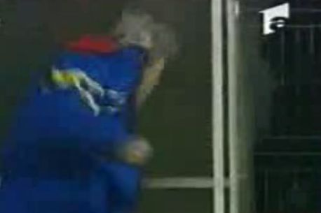 din timpul meciului cu Basel, când a spart copertina băncii de