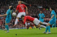 Min 49 Nani și Rio Ferdinand își centrează unul altuia mingii peste careul Barcei, fără să reușească însă o pasă de precizie în careul lui Valdes