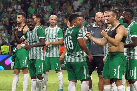 Maccabi Haifa's players celebrate their win in the UEFA Champions League group H football match between Israel's Maccabi Haifa and Italy's Juventus at the Sammy Ofer stadium in the city of Haifa on October 11, 2022.,Image: 729826814, License: Rights-managed, Restrictions: , Model Release: no