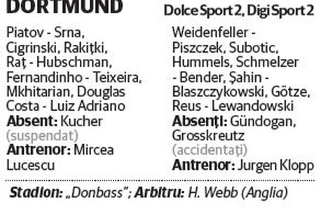Dacă Real Madrid – Manchester United e cel mai interesant duel din „optimile” Ligii Campionilor prin prisma numelor implicate, meciul dintre Șahtior Donețk și Borussia Dortmund aduce în prim-plan echipele cu cel mai frumos și fluid joc din Ligă, după cel al Barcelonei. Iar Mircea Lucescu, antrenorul Șahtiorului, este conștient de dificultatea jocului de azi: „N-o să credeți, dar Dortmund e o echipă superbă. Deși nu are superstaruri în lot, a câștigat cea mai tare grupă din Ligă. Iar asta spune multe despre valoarea lor”.