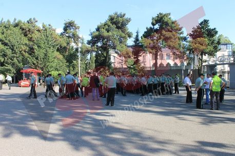 În aceste clipe, aproximativ 30 de polițiști controlează interiorul arenei cu câini special antrenați. Măsurile organizatorilor vin ca urmare a amenințării cu bombă înregistrate sâmbătă seară la antrenamentul efectuat de Dinamo Tbilisi.