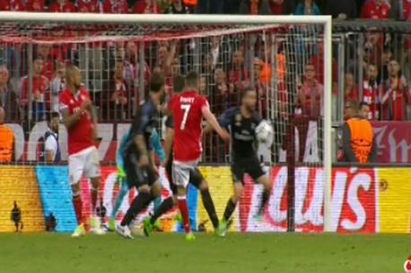 Decizie controversată luată de arbitrul partidei Bayern Munchen – Real Madrid, Nicola Rizzoli, în finalul primei reprize, într-un moment în care gazdele conduceau cu 1-0, după golul lui Vidal, din minutul 25.