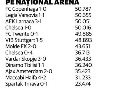 57,9 % este procentul de ocupare a Arenei Naționale la meciurile Stelei în grupele Ligii, cu Chelsea și Basel.