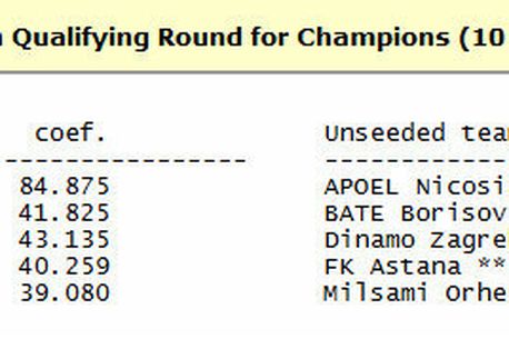 Campioana României are un coeficient de 40,259, în timp ce prima sub linie, APOEL Nicosia, are 35,460 puncte, iar următoarea, BATE Borisov – 35,150 puncte. În acest sezon, Steaua a acumulat 1,75 puncte și este obligată să prindă cel puțin grupele Europa League, pentru a scăpat de emoții.