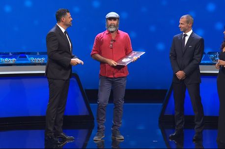 Eric Cantona (53 de ani) a primit, vineri, la tragerea la sorți a grupelor Ligii Campionilor, premiul Președintelui UEFA. Slovenul Aleksander Ceferin a urcat pe scenă pentru a-i înmâna premiul legendarului fotbalist francez.