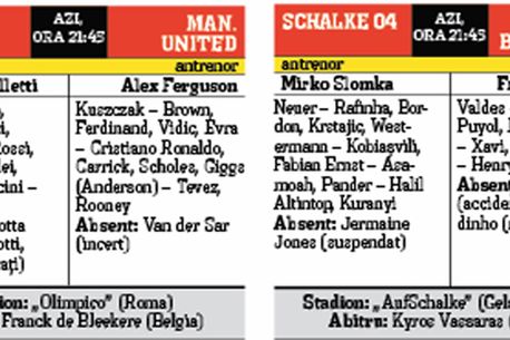 În celălalt sfert de finală al zilei, Barcelona va juca la Schal-ke fără Ronaldinho, neconvocat. Presa spaniolă a scris ieri că, dacă va pierde meciul, antrenorul Frank Rijkaard va fi înlocuit cu Guardiola.