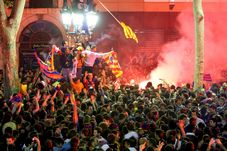 Fanii echipei au invadat străzile Barcelonei imediat după fluierul final, așa cum s-a întâmplat și sâmbătă noapte, după victoria obținută de FC Barcelona, cu scorul de 6-2, în fața rivalei Real Madrid, în campionatul spaniol.