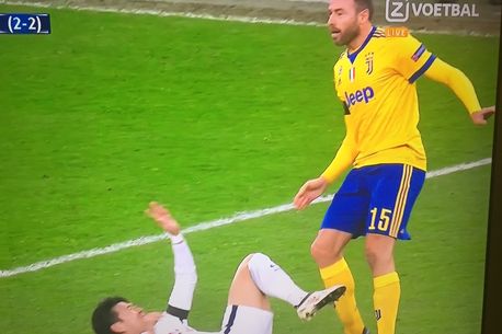 După un duel aerian pentru minge, Barzagli aterizează pe piciorul lui Son, cu ambele picioare, îl calcă de câteva ori, apoi în timp ce se îndepărta de el a încercat să-l lovească cu călcâiul. În ciuda gesturilor sale, Barzagli a scăpat nepedepsit. Arbitrul partidei, polonezul Simon Marciniak nu a observat întâmplarea, așa că fundașul lui Juventus a scăpat fără cartonaș.