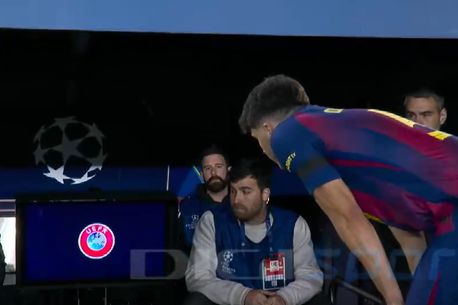 Tânărul fundaș central al catalanilor l-a faultat pe Giuliano Simeone. După ce a revăzut faza la VAR, Istvan Kovacs i-a arătat cartonașul roșu și l-a trimis la vestiare. Înainte de a părăsi terenul, a aruncat un ochi pe ecranul pe care Kovacs a văzut faultul comis de el, dar cum s-a apropiat, imaginea a fost întreruptă și înlocuită cu logo-ul UEFA.
