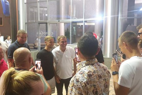 Cu toate că dezamăgirea produsă de eliminare este uriașă, antrenorul formației noastre a dat din nou dovadă de caracter. După ce a fost fair-play și i-a felicitat personal pe jucătorii și pe membrii staff-ului adversarilor, Gică Hagi nu i-a refuzat pe fanii locali atunci când a fost solicitat pentru poze și autografe.