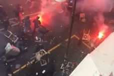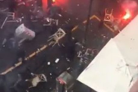 Suporterii clubului german s-au asigurat că lasă cât mai multă distrugere în spatele lor, distrugând mai multe mașini, printre care una de poliție, au spart vitrinele magazinelor și au răsturnat tomberoane.