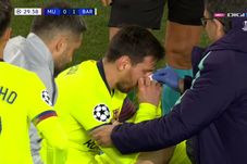 Undeva la 30 de metri de poarta lui Ter Stegen, Messi a încercat să protejeze un balonul venit din defensivă. Din spatele său a apărut Smalling, care l-a îmbrâncit în încercarea de a-i lua fața, iar după ce a trecut de adversarul său l-a lovit involuntar cu palma peste față. Lovitura i-a a cauzat lui Messi o sângerare serioasă, dar jocul nu s-a oprit decât peste câteva zeci de secunde bune, întrucât Manchester United nu a dat mingea afară. Imediat după ce mingea a ieșit, camerele care asigură transmisiunea meciului l-au surprins pe Messi plin de sânge în zona nasului și a ochiului stâng.
