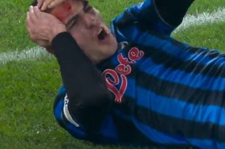 În minutul 90+3, la 3-1 pentru Atalanta și 3-3 la general, Bensebaini a intrat violent într-un duel cu Krstovic. Fundașul lui Dortmund a ridicat piciorul mult prea sus și l-a lovit cu crampoanele direct în față pe adversar. Krstovic a căzut instant, iar imaginile au fost greu de privit. Atacantul avea fața plină de sânge.