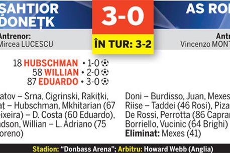 retur a optimilor, 3-0 cu AS Roma. A fost o seară în care