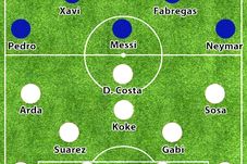 Barcelona: Pinto – Dani Alves, Pique, Mascherano, Jordi Alba – Busquets, Xavi, Fabregas – Iniesta, Messi, Neymar.