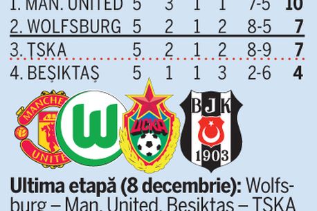 Manchester United, Wolfsburg și ȚSKA ar avea toate cele 10 puncte.