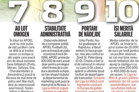 Parcursul nicosienilor a fost ajutat de decizia președintelui UEFA, Michel Platini, care a „barat” accesul în Ligă locurilor patru din Spania, Italia și Anglia, pentru a avantaja echipele din campionatele mici. Deși ar fi trebuit să profităm și noi de schimbare, România este zero pe harta fotbalului în 2012, iar ProSport vă oferă 10 motive pentru care ciprioții au reușit „minunea”, iar noi nici nu îndrăznim să visăm până acolo.