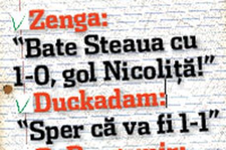 „Sperăm să reușim prima victorie dacă vrem să ne calificăm, altfel va fi greu. De fiecare dată când am evoluat cu ei, n-am câștigat. Sper să fi învățat din greșeli. Va fi o confruntre de totul sau nimic“, a declarat Rădoi la conferința de presă de ieri. Liderul roș-albaștrilor și spune că pentru a câștiga, steliștii nu trebuie să primească gol. „Nu am putut bate Otopeniul, de aceea nu știm dacă vom fi dinainte câștigători cu Lyon. Sperăm să nu mai ratăm. Am trecut cu brio peste Gilardino și Mutu, la fel vrem să trecem și peste cuplul Benzema și Juninho. Nu trebuie să marcheze, pentru că vom avea probleme“, avertizează căpitanul.