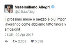 Adrenalina i-a dat insomnii lui Allegri, care, deși era trecut de mult de miezul nopții, a simțit nevoia să se exprime și el pe contul lui de socializare de pe Twitter.