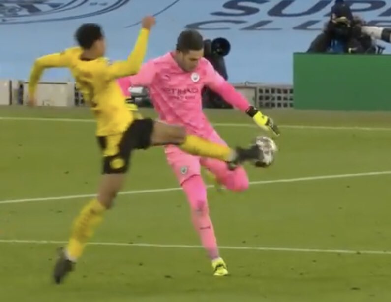 Arbitrul român a fluierat joc periculos asupra portarului de la Manchester City. Pe reluări se vede cum Bellingham intră cu talpa la minge și trece de Ederson. Totodată și portarul englezilor în lovește pe puștiul Borussiei în picior, acesta trece însă și înscrie. Ovidiu Hațegan a anulat golul nemților și a oferit posesia celor de la Manchester City. De asemenea, „centralul” l-a sancționat pe Bellingham cu cartonaș galben.