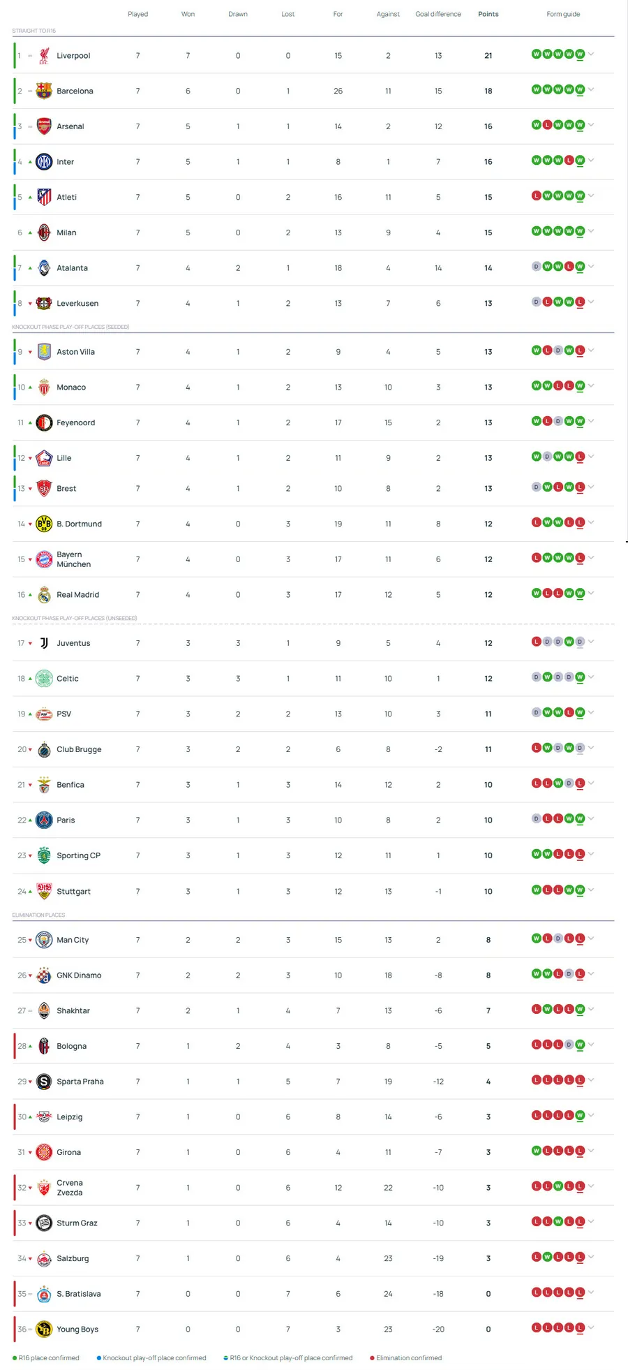 La rândul lor, Girona, Sparta Praga și Șahtior au nevoie de minuni pentru a prinde un loc între primele 24, dar în acest moment matematic mai au șanse.