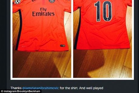 Bucuros pentru cadoul primit, Brooklyn a postat pe contul său de Instagram poze cu tricoul lui Ibrahimovic.