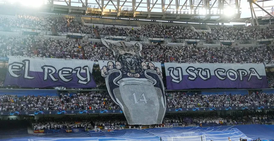 Suporterii echipei madrilene au afișat un banner uriaș, pe toată suprafața peluzei, cu un mesaj cu subînțeles. De asemenea, aceștia au afișat și trofeul Ligii Campionilor, cu numărul 14 inscripționat, reprezentând numărul de trofee câștigate în cadrul acestei competiții.