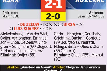învins, cu scorul de 20-1, echipa franceză AJ Auxerre. Pentru Ajax