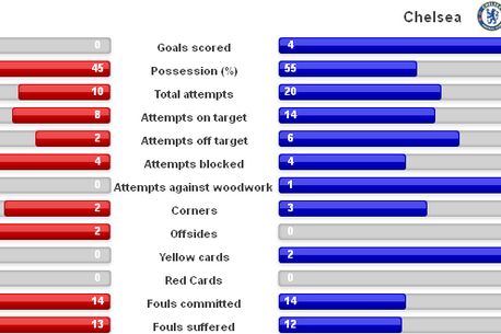Chelsea a dominat meciul cu Steaua e la un capăt la altul, fapt dovedit și de cifrele partidei. Englezii au avut o posesie de 55%, conform statisticilor UEFA, dar steliștii au fost cei care au alegat mai mult.