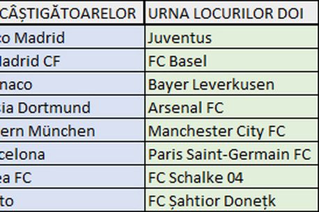 Acasa » Fotbal Extern » Europa League » S-au tras la sorți optimile de finală din Liga Campionilor: PSG – Chelsea, City – Barcelona, Șahtior – Bayern. Duel românesc în șaisprezecimile Europa League: Spurs – Fiorentina. Toate meciurile