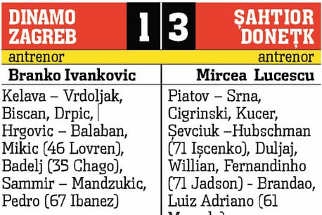 Tehnicianul român, aflat pe banca „minerilor“ din 2004, trebuia aseară să apere rezultatul de 2-0 obținut în meciul tur. „Il Luce“ s-a ținut de cuvânt când a declarat pentru presa ucraineană că echipa sa va marca în Croația. Fără Răzvan Raț, accidentat, trupa tehnicianului român nu a avut nicio emoție în privința calificării, mai ales că Adriano a punctat chiar înaintea pauzei pentru un liniștitor 3-0 la general. După ce Balaban a readus egalitatea, brazilienii Brandao și Willian au desăvârșit „opera“ calificării, marcând golurile izbăvitoare. Astfel, românul care pregătește cu succes echipa din Donețk de patru sezoane merge încă o dată la „masa bogaților“ Europei.