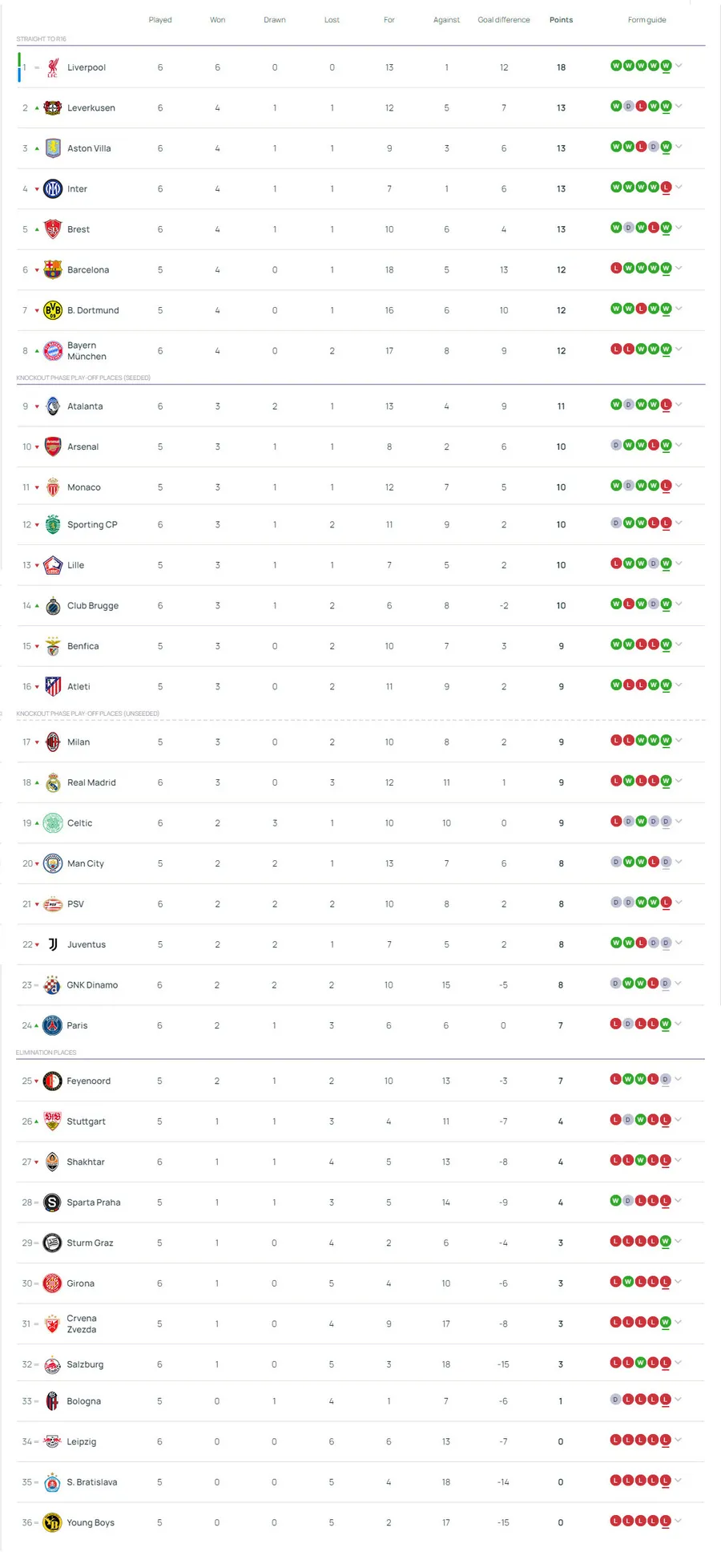 Miercuri, 11 decembrie, se joacă Atletico Madrid – Slovan Bratislava, Lille – Sturm Graz (ambele de la 19:45), Borussia Dortmund – FC Barcelona, Feyenoord Rotterdam – Sparta Prague, AC Milan – Steaua Roșie Belgrad, Arsenal – AS Monaco, Juventus – Man. City, Benfica Lisabona – Bologna și VfB Stuttgart – Young Boys (toate de la 22:00).
