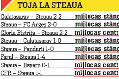 3 pase de gol a dat Toja la Steaua de pe postul de mijlocaș stânga
