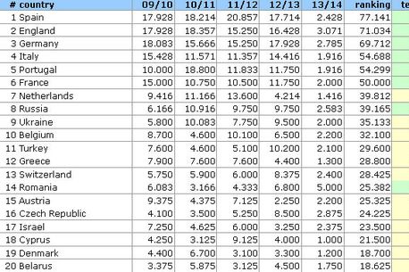 Clasamentul coeficienților pe echipe, sezonul 2013-2014