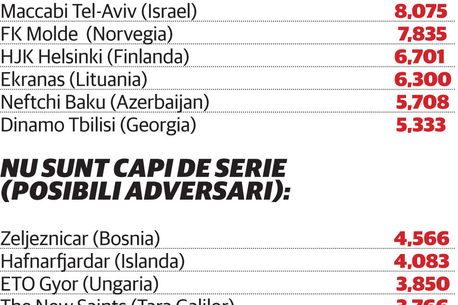 Iată mai jos componența grupelor și cei cinci posibili adversari ai Stelei în turul doi preliminar al Ligii Campionilor. Steaua, care va fi cap de serie la tragerea la sorți a turului doi preliminar al Ligii Campionilor, a scăpat de un duel cu campioana Bulgariei, Ludogoreț Razgrad, iar teoretic cel mai puternic advesar al echipei lui Reghe este campioana Bosniei, FK ŽeljezniÍar.