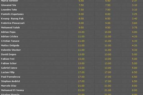 Vezi mai jos cotele pentru marcatorii din partida de diseară