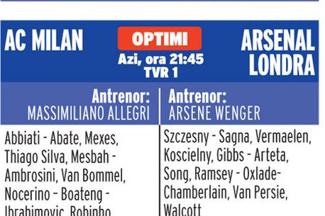 Împrumutat de americani pe „Emirates”, Henry (34 de ani) își va încheia azi aventura de două săptămâni la clubul său de suflet. După ce a înscris trei goluri în șase partide de la revenirea sa în Anglia, Henry l-a băgat în sperieți pe antrenorul milanezilor, Max Allegri: „E un fotbalist care a scris istorie. Se descurcă pe cele mai mici spații și are calități incomparabile cu ale altor fotbaliști. Va trebui să fim foarte atenți la el”. Pentru a fi sigur că elevii săi nu vor fi depășiți, Allegri a pregătit faza defensivă timp de jumătate de oră la antrenamentul de luni, unde „diavolii” au exersat și clasicul șase contra șase la o singură poartă. Tehnicianul „rosso-nerrilor” a completat: „Londonezii sunt rapizi și tehnici. E crucial să nu primim gol! Arsenal are un stil extrem de eficient: ține nouă jucători în spatele mingii și apoi lansează contraatacuri letale”.