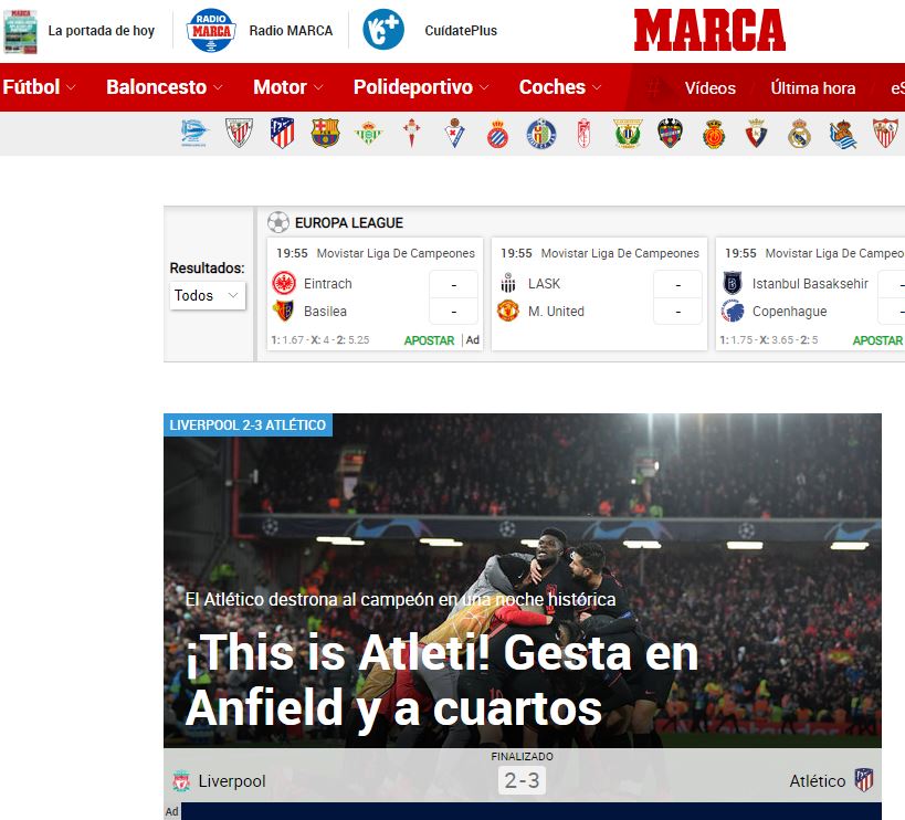 „This is Atleti!”, au titrat cei de la Marca, aluzie directă la celebrul „This is Anfield!” care tronează peste istorica arenă a lui Liverpool.