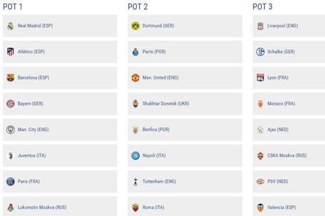 În aceste condiții, cluburi ca Barcelona (titlul în Spania), Real Madrid (deținătoarea trofeului Ligii Campionilor), Atletico Madrid (triumfătoare în Europa League) sunt în prima urnă, alături de forțe ca Bayern (Germania), Manchester City (Anglia), Juventus (Italia), PSG (Franța) si Lokomotiv Moscova (Rusia).