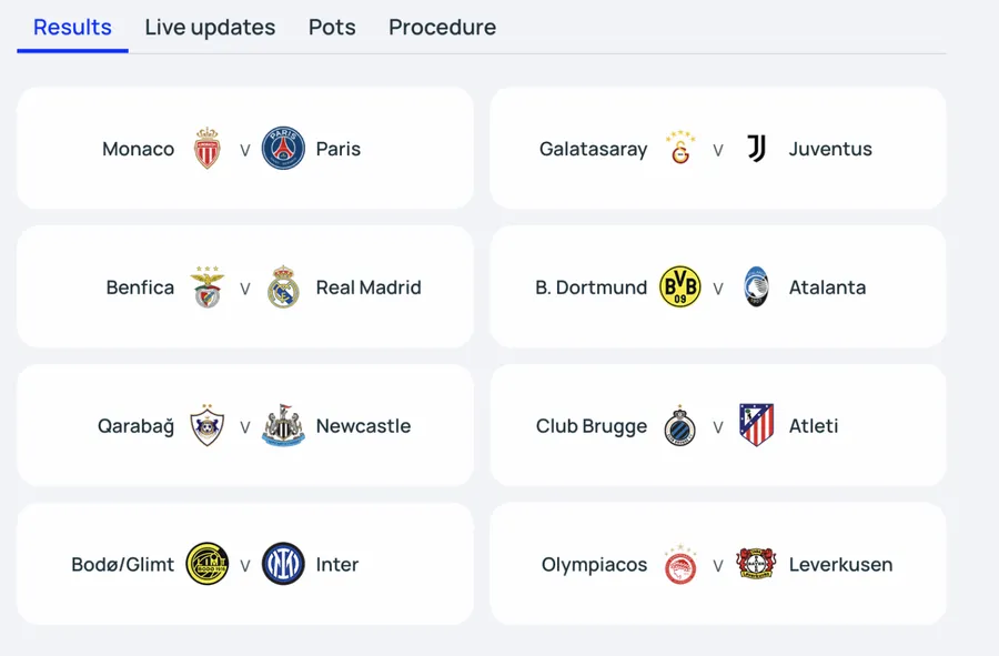 - PSG (locul 11) și Newcastle (locul 12) vor fi împerecheate cu Monaco (locul 21) și Qarabag (locul 22)