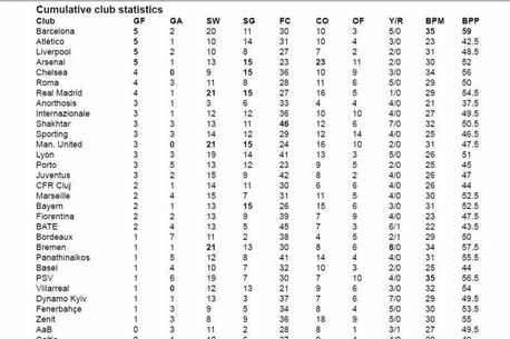 Astfel, Steaua are zero goluri marcate, doar 8 șuturi spre poartă și 10 pe poartă. Deși Celtic, Zenit sau Aalborg au mai mai puține șuturi pe poartă decât echipa lui Gigi Becali, criteriul de referință al UEFA este cel al șuturilor spre poartă.
