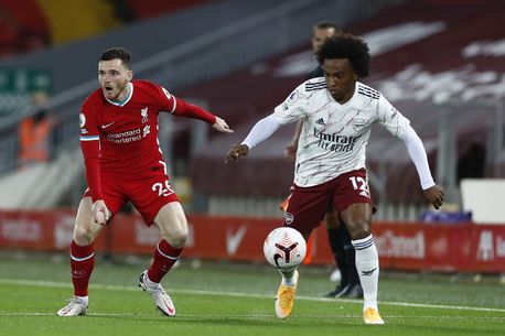 Min. 35: GOOOL LIVERPOOL! Robertson primește singur în careu și marchează pentru 2-1, luându-și revanșa după ce a greșit la golul lui Arsenal.