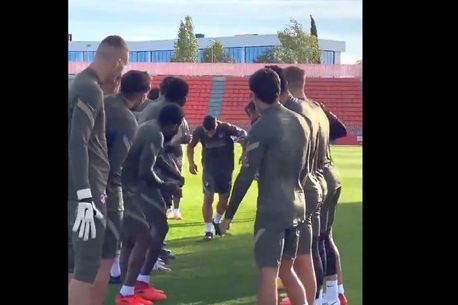 La primul antrenament susținut sub culorile lui Atletico Madrid, Luis Suarez nu a scăpat de „botezul” obișnuit din partea noilor săi colegi. Aceștia au format un „tunel” și l-au luat la palme pe atacantul uruguayan, care a trecut cu zâmbetul pe buze printre coechipieri.
