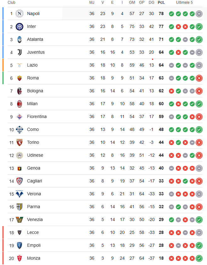 Cristi Chivu a smuls un punct luna trecută în confruntarea cu fosta sa echipă, scor 2-2. A fost momentul în care elevii lui Simeone Inzaghi au început să piardă teren în lupta la titlu, iar cu două etape înainte de final, nerazzurii sunt la 1 punct în spatele liderului Napoli. Urmează Parma – Napoli, un meci decisiv pentru ambele echipe.