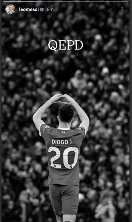 Concret, pe contul său oficial de Instagram, superstarul de la Inter Miami a postat o fotografie cu Diogo Jota, la care a adăugat textul „Odihnește-te în pace!”.