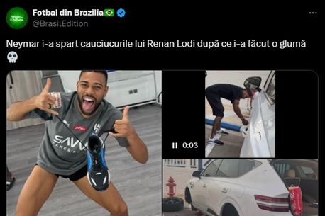 Renan Lodi este colegul lui Neymar de la naționala Braziliei și Al-Hilal. Cei doi se înțeleg foarte bine, dar până la glume. Neymar nu pare genul care apreciază glumele colegilor, iar asta s-a văzut în cel mai viralizat clip video cu brazilianul care îi taie cauciucurile de la mașină colegului său.